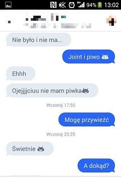 wczoraj wieczorem zapodalem avio... niezbyt myslalem ze mnie poczesze ale po calym dniu szukania palenia w miescie (od 18 do 23) bylem z qmplem tak zdesperowany ze poszlismy do apteki i qpilismy po 4 paczki na glowe (20 tabletek jakby ktos nie wiedzial)...byla ~23:30...zaczelismy szukac miejscowki aby spokojnie to wtrymsic.w konu padlo na parapet jakiegos odludnego sklepu. okolo 24:00 zaczelismy czuc ze nas czesze...faza jak po kilku maszkach mj...ogolna beka...dziwne przemyslenia..pool godziny po tym postanowilismy sie przejsc...i wtedy to sie stalo.