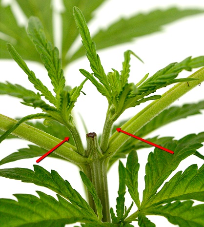 W fazie wegetatywnej rozpocząć można także trening nadziemnej części rośliny. Podstawowym jest tzw. topping, czyli przycięcie stożka wzrostu, co sprawia że roślina rozwija dwie równoległe łodygi, które następnie można rozciągać na boki, stosując LST (low stress training), by zwiększyć produkcję poprzez wzrost horyzontalny.