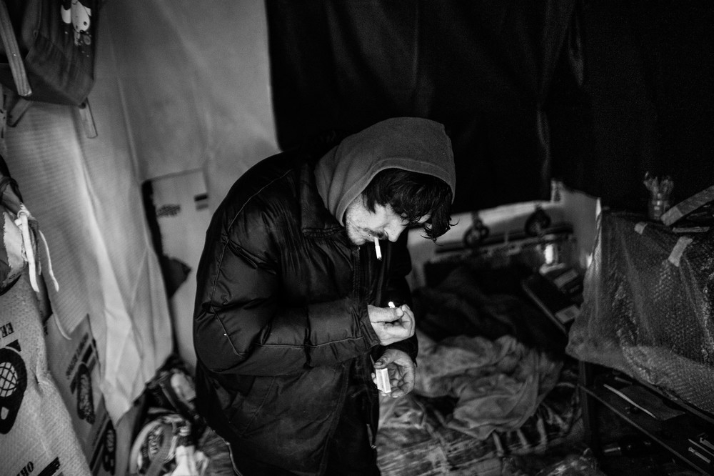 Artut, heroinista, odpala papierosa w swojej drewnianej szopie w Sofii, gdzie mieszka.